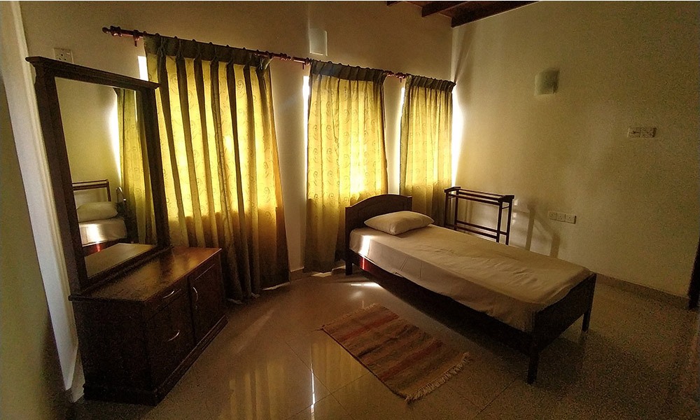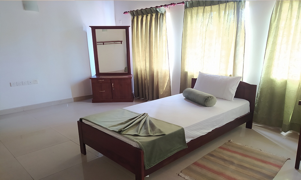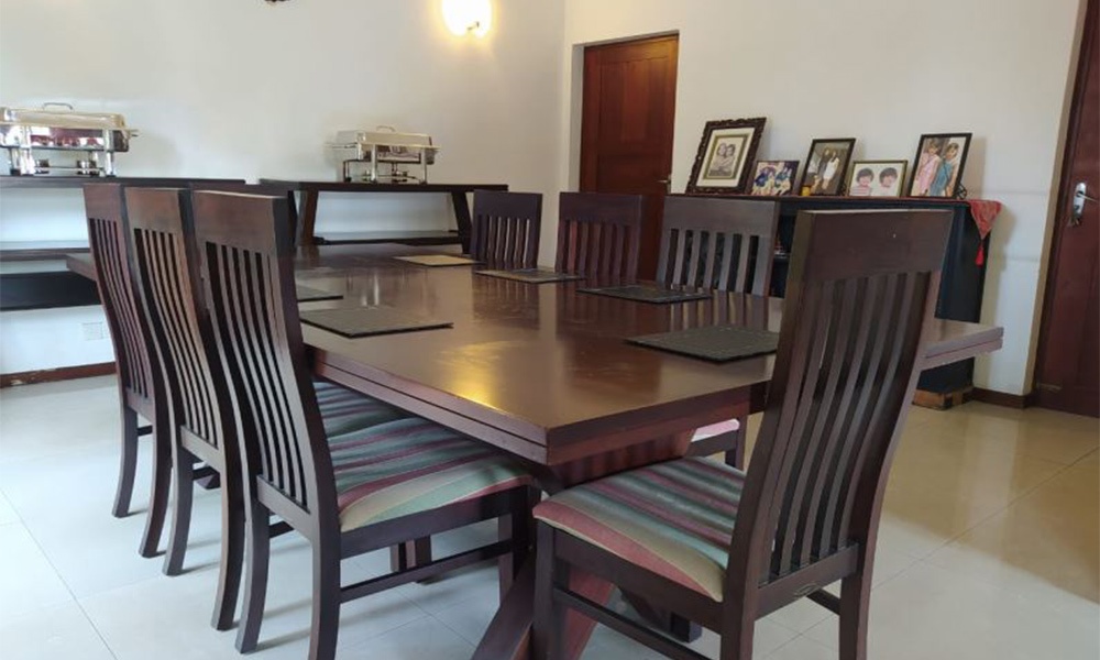 This apartment features two medium-sized, air-conditioned bedrooms, one with a queen-sized bed and the other with two single beds, making it an ideal choice for four adults or couples seeking an extended stay in Sri Lanka. The contemporary, fully-equipped private kitchen is complemented by a well-lit living area and a spacious dining space. A large balcony provides the perfect setting for in-house gatherings, while satellite TV and other amenities enhance the experience. Conveniently located close to Sri Lanka's capital city, the apartment is within walking distance of picturesque cityscapes and renowned landmarks. For larger groups of up to 8 adults, this apartment can be combined with the neighboring apartment no. 3 for an even more comfortable stay. Please note that this apartment is situated on the 2nd floor and does not have an elevator. We are more than happy to assist with your luggage