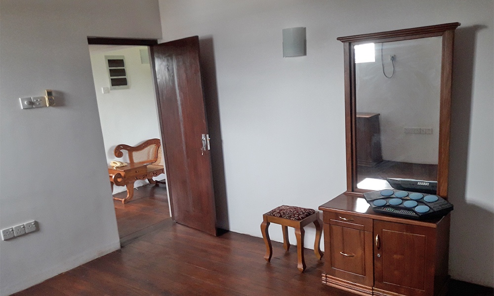 Situated on the 3rd floor, this is our largest apartment, featuring a full wooden floor area that includes an air-conditioned bedroom with a queen-size bed, a smaller air-conditioned bedroom with two single beds, a separate living room with satellite TV, and a spacious gathering area. This apartment is ideal for a couple or up to four business travelers seeking a comfortable stay near Sri Lanka's capital while maintaining their privacy. Located within walking distance of stunning city views and renowned landmarks, this apartment offers convenience and enjoyment. Please note that the apartment is on the 3rd floor without an elevator; however, we are more than happy to assist with luggage and room services. We warmly invite you to stay with us.